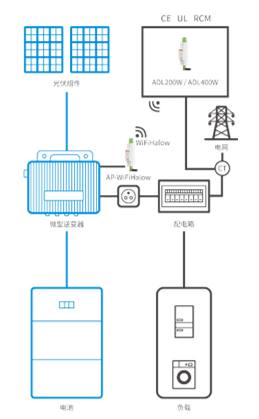 仪表本身支持WIFIhalow通讯,逆变器测可通过附加一个AP实现无线通讯。
