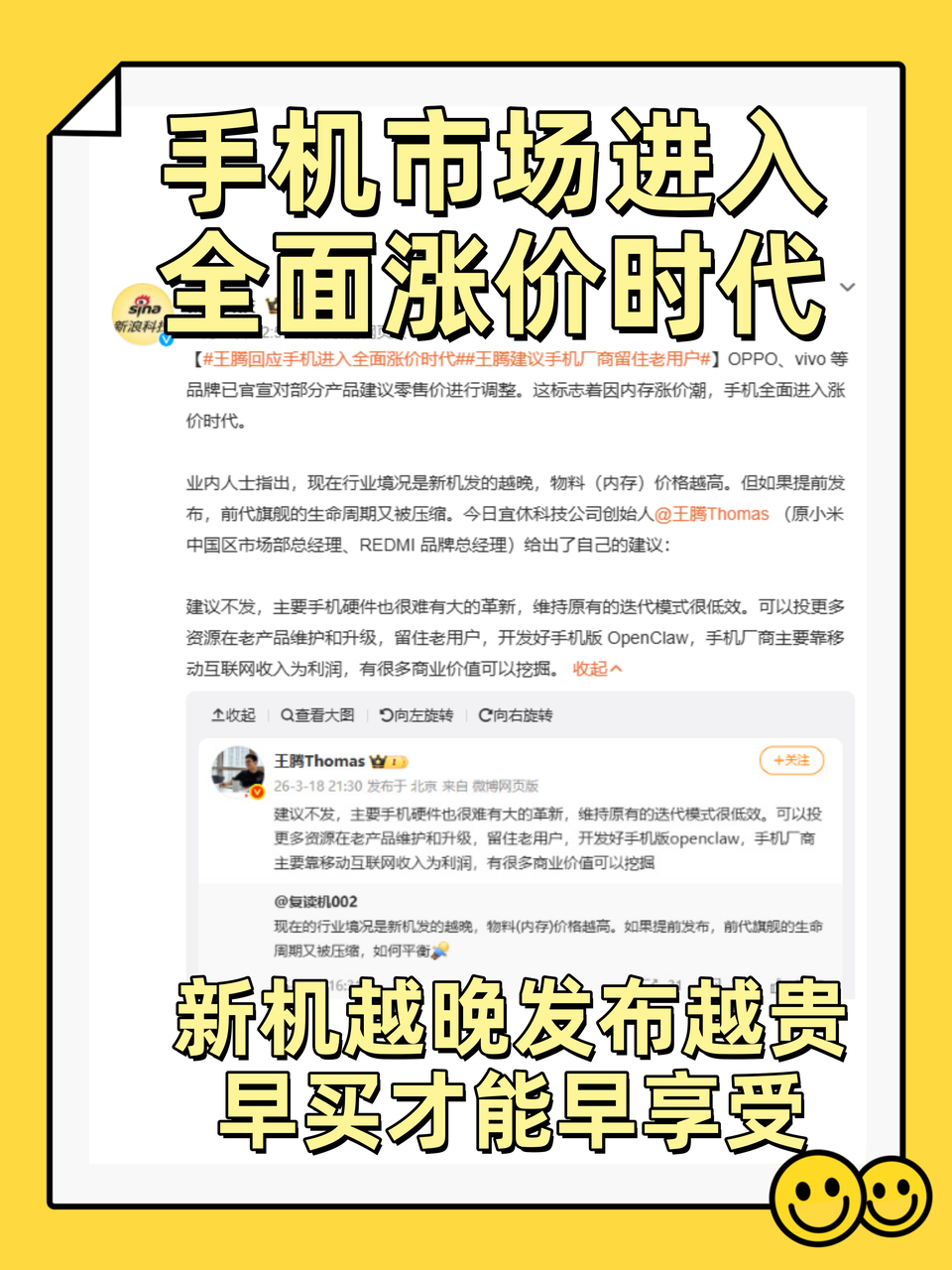 看到很多拿手机市场大涨价为由劝别人别买1TB手机的帖子,实际上越是内存涨价初期越要买1TB手机!!