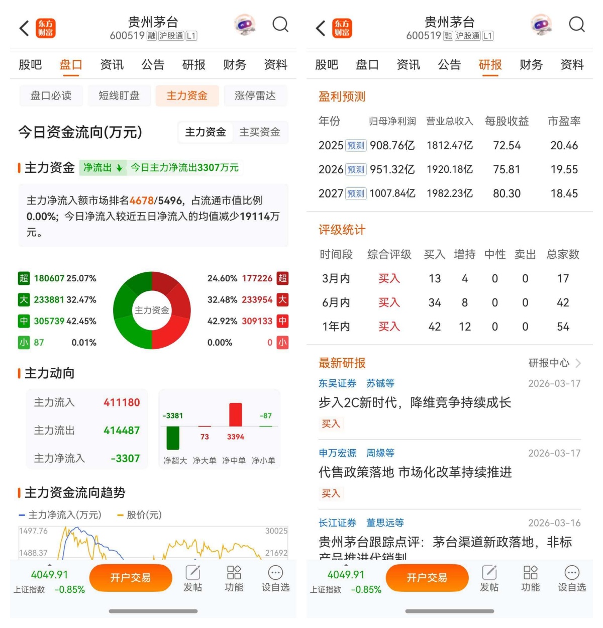 在盘口分析方面,鸿蒙版东方财富新版本上线了主力资金和涨停雷达功能。对于经常关注资金流向的用户来说,有这些实时数据支撑,决策都更有底气了。如果想深入研究,个股数据的研报盈利预测也一定不能少,以后在手机上就能满足个股分析需求。