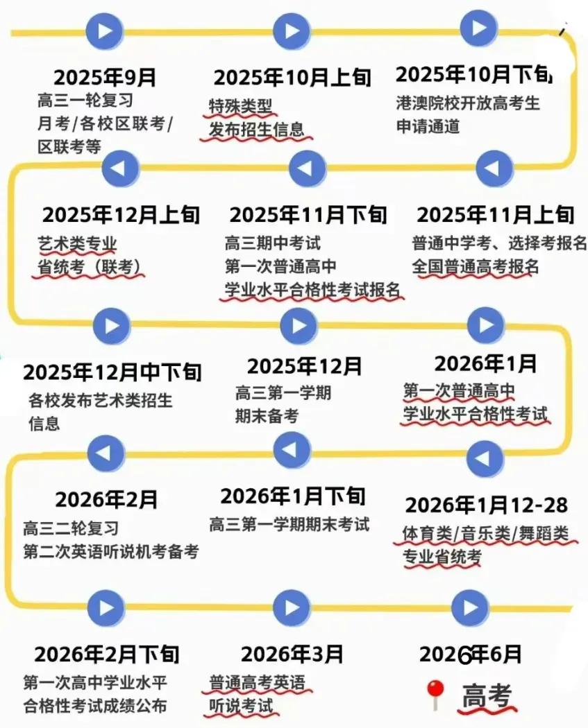 2025已到秋季,高三倒计时也已开启,从秋到夏的这接下来大半年,得踩着时间节点走,规划好,千万别错过!