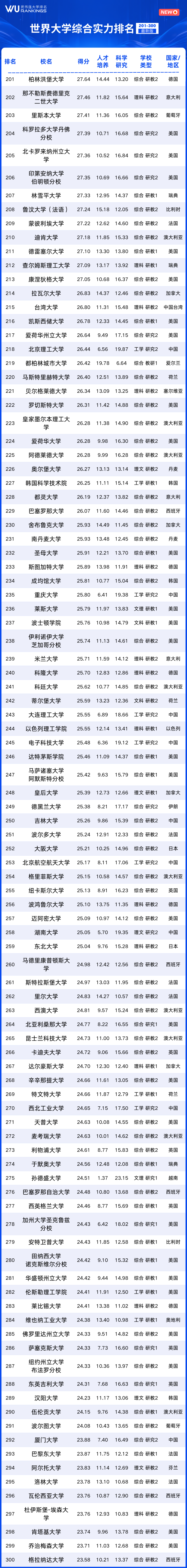 世界大学综合实力101-500名