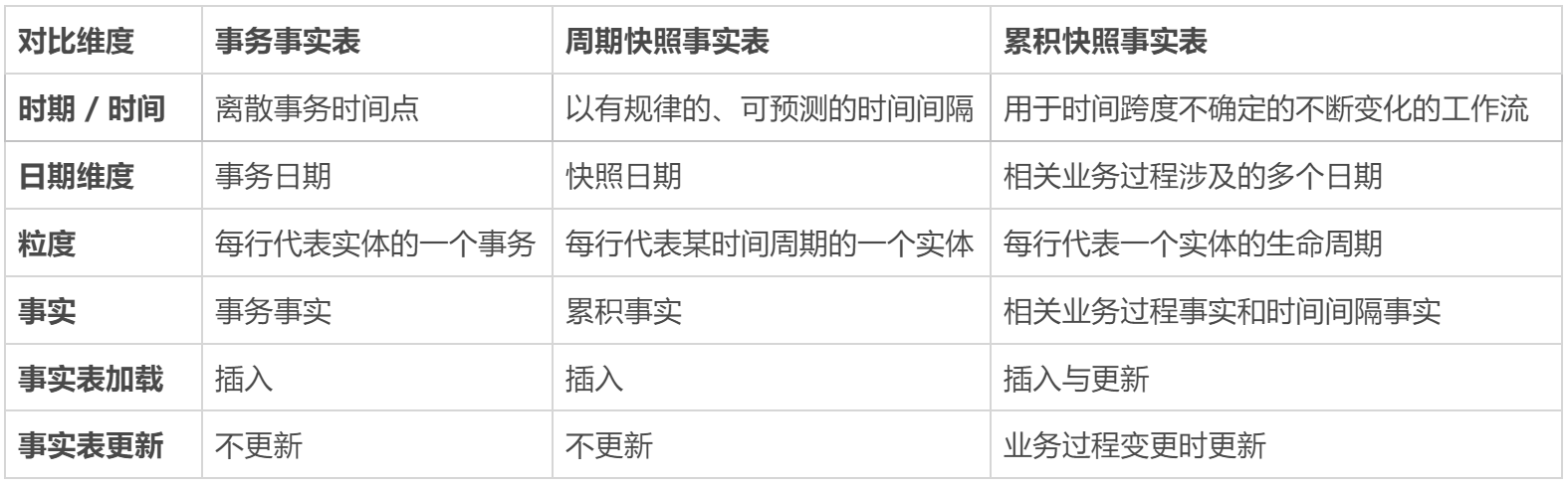更新频率高,多为实时或近实时增量更新,业务过程发生即产生数据,和维度表的静态特征形成鲜明对比。