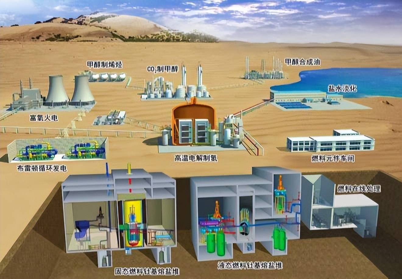 选址自由我们刚才说了,钍基熔盐堆不需要用水来冷却。这意味着,这种核电站可以自由建设在任何区域,包括戈壁沙漠。实际上,2025年我国取得突破的钍基熔盐堆,就是在甘肃沙漠中。