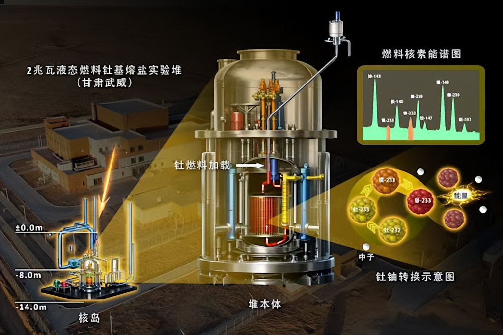经过十几年的努力,我国于2025年11月,在甘肃武威这座国际唯一在运行液态燃料熔盐实验堆上,实现了钍到铀的转化信号,验证了钍资源利用可行性,一举完成对美国的弯道超车。