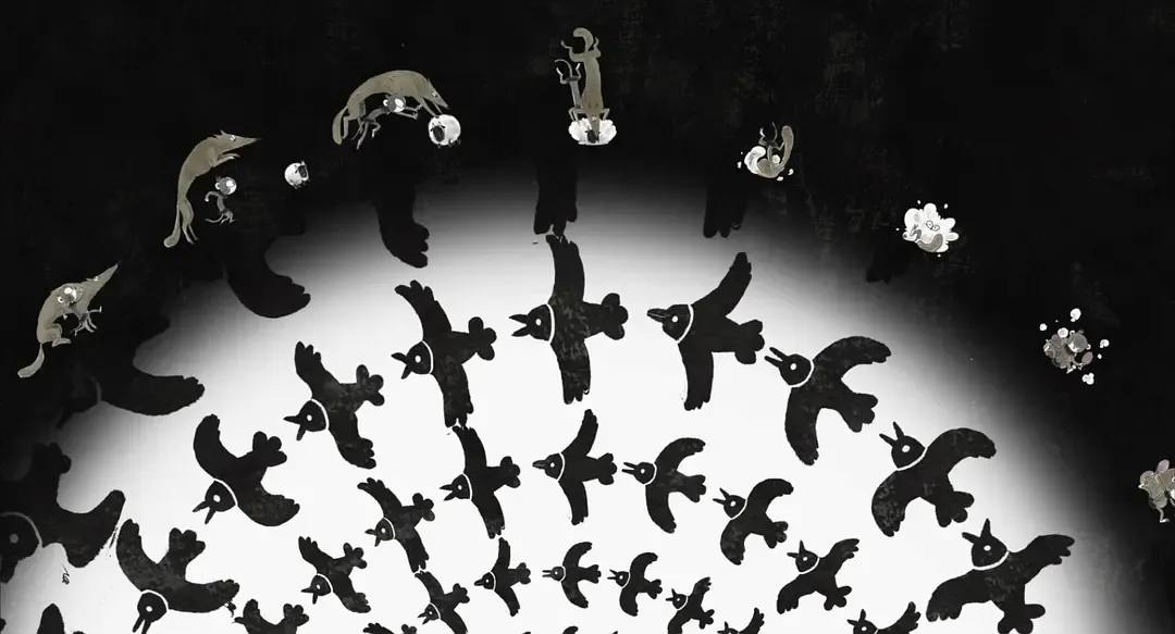 除了核心的宣纸水墨风格,影片更是一场动画技法的“万花筒”。为了让画面更具表现力,创作团队融合了3D拉毛剪纸、玻璃板油画动画、石块定格、沙画以及羌绣定格等丰富多彩的表现形式。这种将传统非遗技艺与现代实验动画相结合的尝试,让影片的每一帧都仿佛是一幅流动的艺术品。