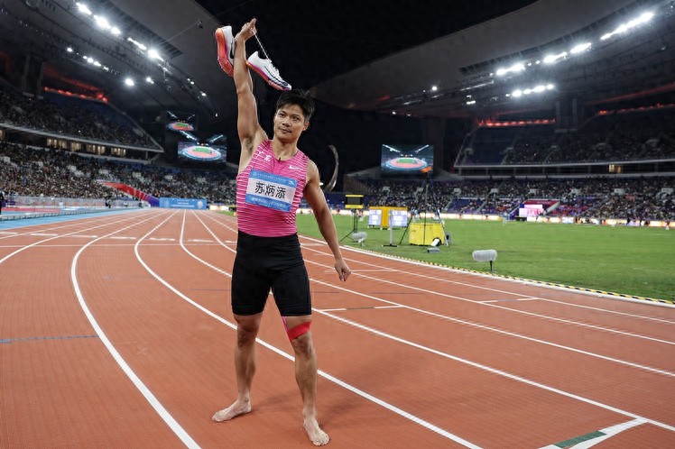 当天到场近四万五千名观众,共同见证这位中国短跑名将的落幕之战。在苏炳添发言后,观众们高呼一声声“苏炳添”,向这位“亚洲飞人”致敬。现场响起粤语金曲《讲不出再见》,歌词这样唱道:“我最不忍看你,背向我转面。”