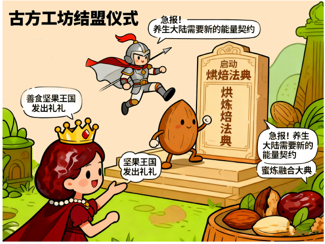 戴着琥珀糖冠的核桃仁骑士,从烘培法典中翻身跃起:“急报!养生大陆需要新的能量契约”,“立即启动蜜炼融合大典——”。