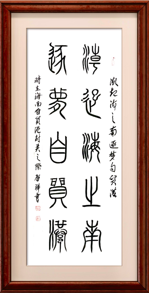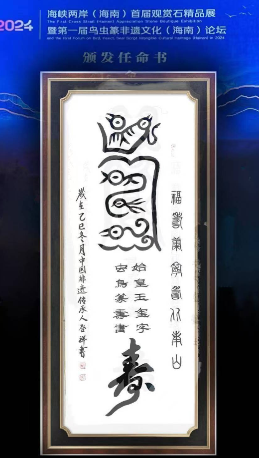 符启祥除了职场上的辉煌成就,在书法艺术上也取得了令人瞩目的成绩。自幼便对书法有着浓厚兴趣的他,在中学和部队期间就积极参与墙报、黑板报的编辑出版工作,为写好软笔书法打下了坚实的基础。在职期间,常应邀参加书画展活动,再次勾起了他对书法艺术的兴趣,特别是当年中书协原副主席钟明善教授为他所题"启祥如意"的中堂墨宝,更增强了他学习书法的信心和动力。退休后,他重拾旧爱,积极参加线上兰亭雅集书画院等单位举办的书法培训班,通过系统的学习并持之以恒,不仅书法技艺日益精进,篆隶楷行草等多种字体均有较好基础,而且热衷于参加有关庆典活动书法笔会和春节送春联下乡活动,积极弘扬中华书法传统文化。有十多幅书法作品被县办《老城春秋》和省办《海南老年》刊物选登。小楷抄写的《少林寺转轮大藏经》被中国崇山少林寺荣誉收藏,永久保存。作品多次选送参与省县两级书画展并获奖。其中,作品参加县"扬清风正气·绘清亷澄迈"书画展荣获三等奖,参加海南省"祖国在我心中,庆祝中华人民共和国成立75周年"老少书画展获优秀奖。 首次参加兰亭雅集书画院 举办的"兰亭杯"全国书画大赛,网评第一名,获人气奖。此后,又先后参加秦韵杯全国书画大赛、盛唐系列第四届华夏杯和第三届兰亭杯全国书画大赛、华夏中庭书画协会全国书画大赛、汉墨兰亭第二届慈善书画大赛、墨缘堂全国书画大赛、翰墨轩书画艺术大赛、墨云翰书画艺术大赛、墨韵杯全国书画大赛等多项赛事,共获得过多项优秀奖、二等奖、一等奖、银奖、荣誉金奖、最佳作品金奖和特等奖等荣誉。