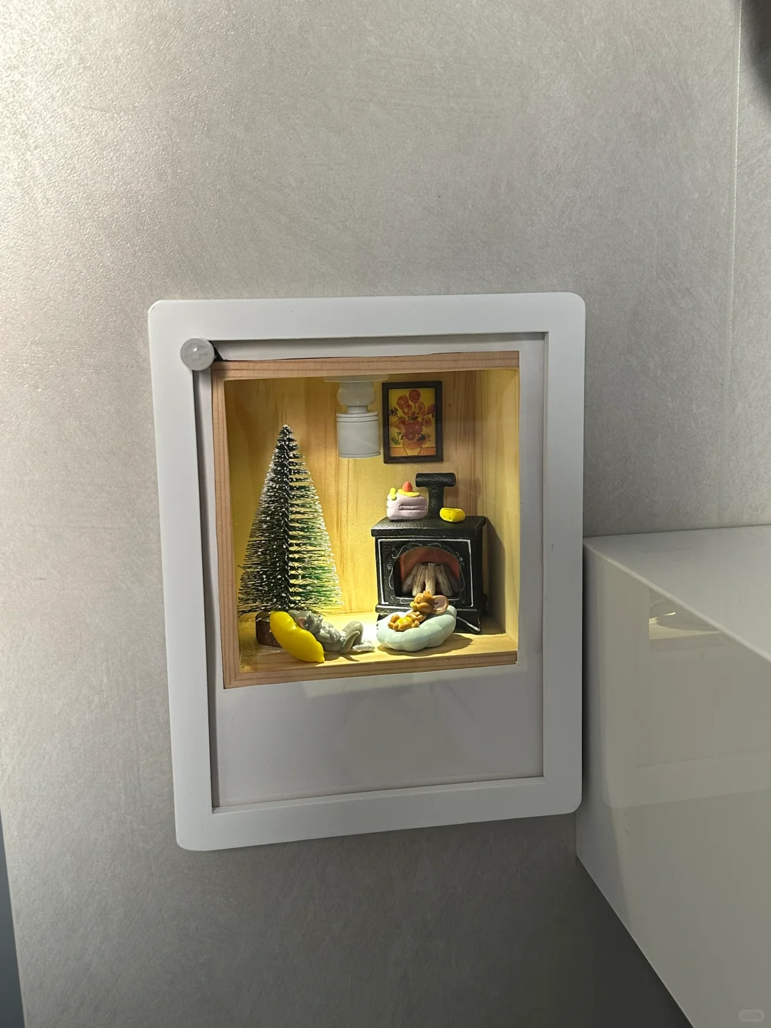网友@小鹅包 的分享:卫生间预留的一个检修口,我一直觉得非常的丑,我就买的相框,和相应尺寸的小木盒,还有一个小感应灯,每次到厨房就亮起来迎接我,真的太好玩了。