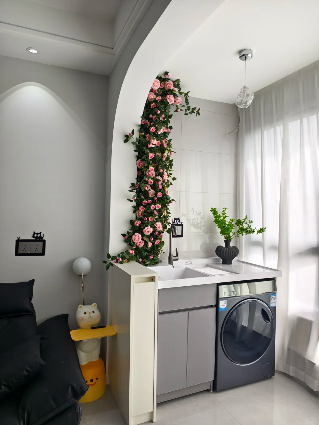 还有阳台下水也是很让人头痛的,除了坐在柜子里,还有什么办法既好看又实用呢?