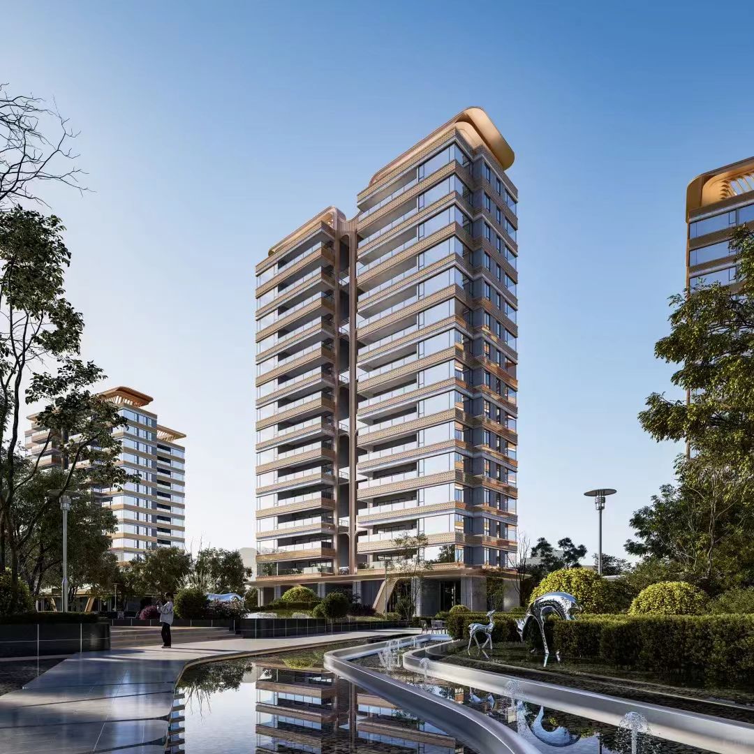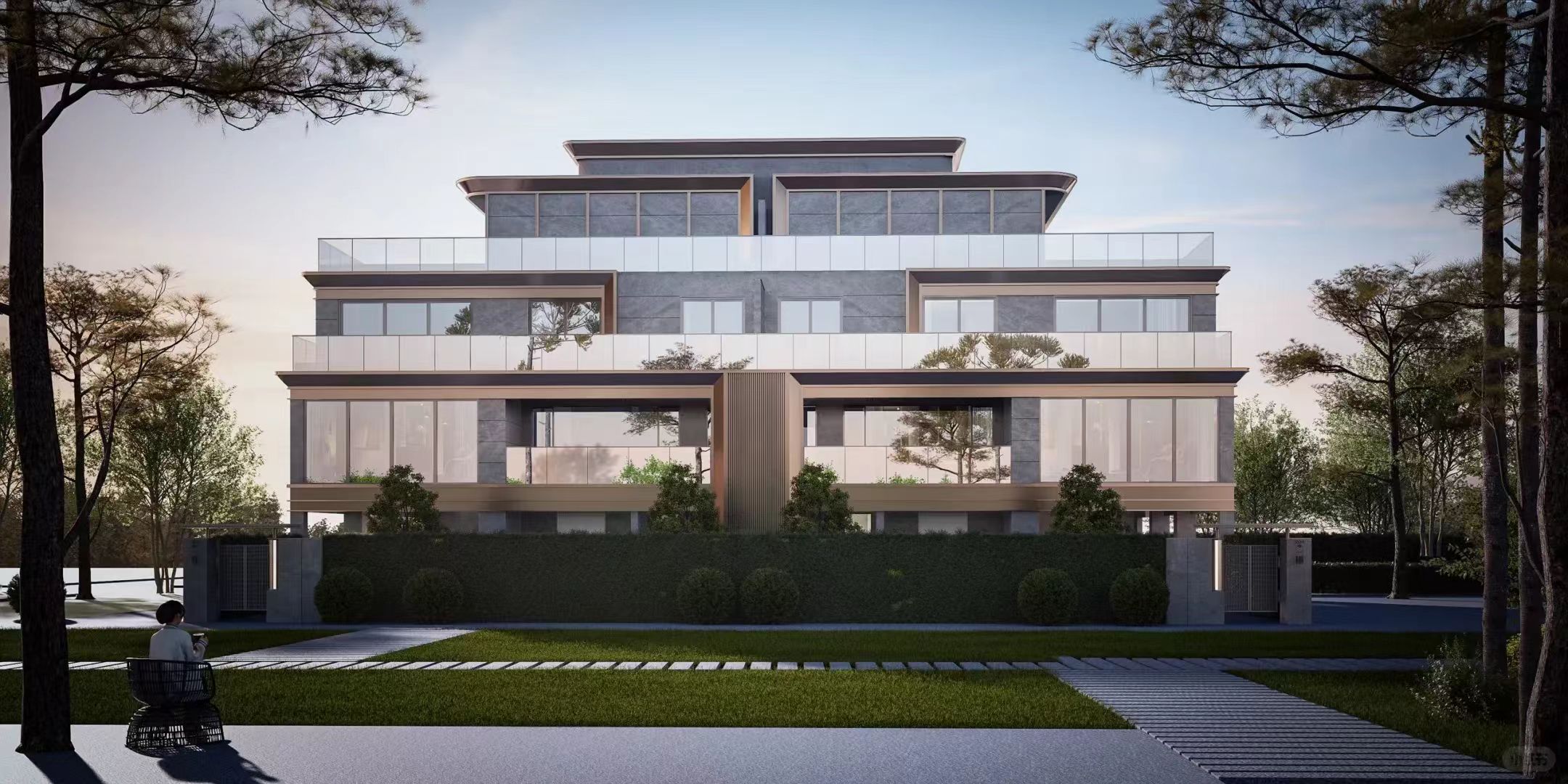 首推1、11、12栋大平层,采用板楼设计,外立面用大幅玻璃幕墙+铝板,开窗面积大,采光和视野通透。