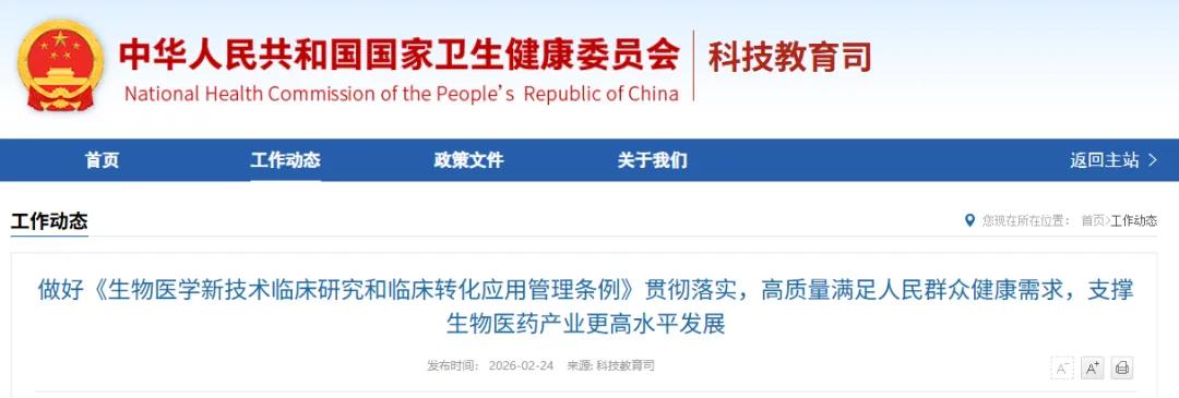 近日,国家卫健委科教司就《生物医学新技术临床研究和临床转化应用管理条例》贯彻落实工作进行说明。