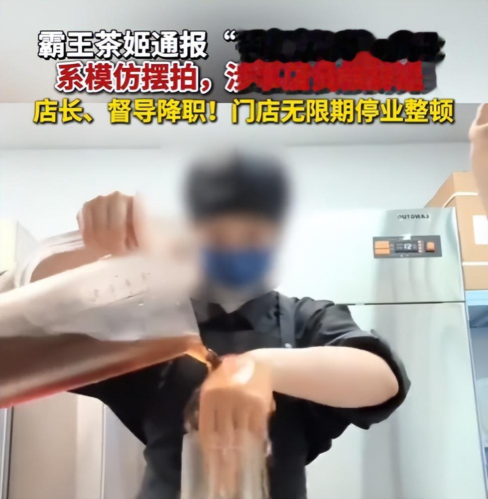 1 月 5 日晚福建网友曝光的霸王茶姬店员徒手搅奶茶视频;