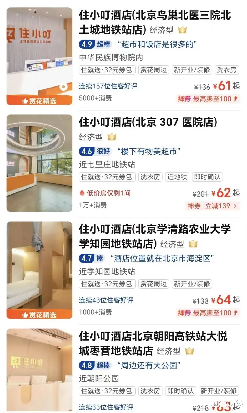 在北京的核心商圈,只需花费60到150元,就能在三里屯、鸟巢或中关村这些黄金地段的地铁口附近找到一家酒店住,以往看起来似乎是一件不可能的事。