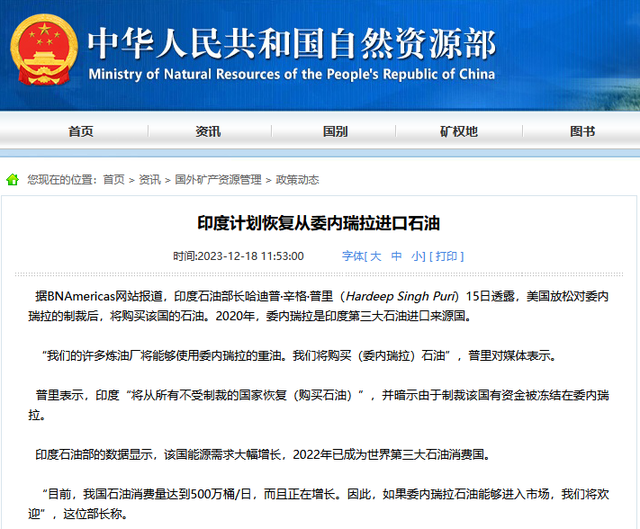而且最主要的一点,就是莫迪看到了新的机会,那就是委内瑞拉。既然薅俄罗斯的羊毛没利润了,就选择换一个对象,所以随着美国对委内瑞拉放松,印度第一时间开始表达了意向。