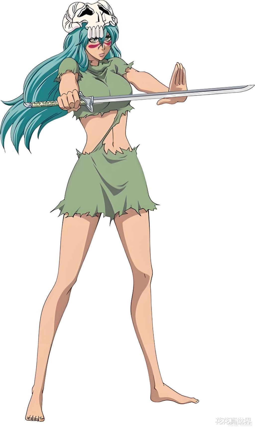 首先我们便是我们所熟悉的原第三十刃妮露,湖绿色的长发长至腰下。有着灰褐色的双瞳,面部的刺青是蔷薇色的横向面纹,有着足以媲美马小桃的蚂蚁腰,身材极其高挑性感,简直就是模特的身材,背部有着“3”的阶级编号,十刃时期,身着白色的战斗服,手戴白色手套,腰间配着斩魄刀,与其小时候模样形成鲜明对比,可谓是反差感拉满,谁说可爱与性感不能并存;再就是缇鲁蒂·桑达薇琪,这个曾经的前十刃,编号为5号,紫色波浪发辫,脸上有水滴状痕迹,有着深紫色双唇的女性破面,是所有已登场的历代十刃成员中,身材最娇小的一员,面具呈现发饰状佩戴在左边头部,配戴露指长手套,短裙装背后缀有两枚片状物,穿着缀有吊带的靴子,整体偏轻熟风格,只可惜戏份较少。
