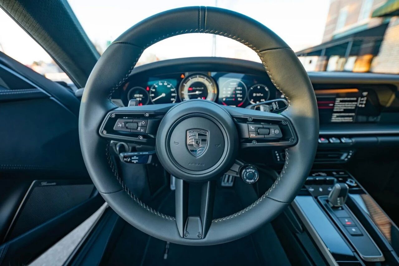 性能上,这台限量版车型直接承袭911 Turbo S的硬核规格,搭载3.7升双涡轮增压水平对置六缸发动机,原厂最大功率640马力,峰值扭矩590磅-英尺,动力储备堪称强悍。与之匹配的是8速PDK双离合变速箱,搭配保时捷全时四驱系统,换挡迅捷、动力传递直接,再加上专属调校的底盘与悬架,将911系列的操控精髓发挥到极致,无论是赛道驰骋还是公路巡航,都能带来顶级的驾驶体验。