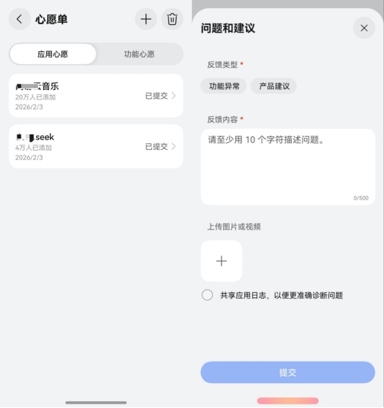 如果有以前用的App没在鸿蒙应用市场找到,或者觉得哪里用起来不顺手,还可以通过里面“应用心愿单”和“反馈建议”直接向华为官方提出。咱们的声音,官方能听到。