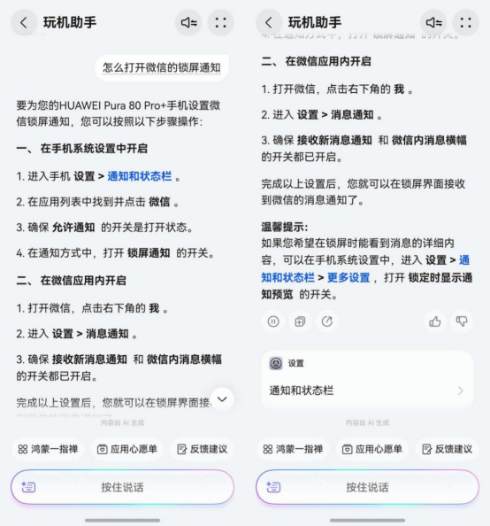 l 怕漏接微信通知,可以问“怎么打开微信的锁屏通知”;