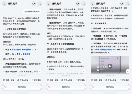 点开卡片,进入“玩机助手”对话界面,直接语音提问就行。比如:
