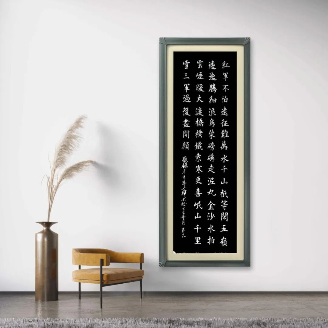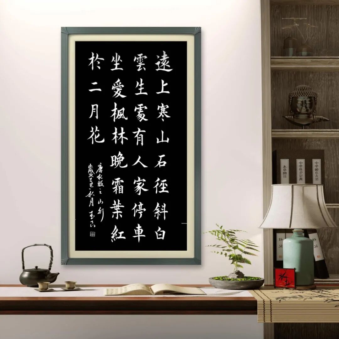在笔法运用上,姜玉良先生始终坚持中锋行笔,兼顾侧锋辅助,用笔沉稳有力、快慢有度,线条粗细均匀、枯润相生,既有着颜真卿书法的雄浑厚重,又有着王羲之书法的灵动流畅,更有着汉隶碑刻的古朴苍劲,尽显一级书法师的扎实功底。他的线条,看似简洁,却蕴含着千钧之力,每一笔都饱满圆润、刚劲有力,没有丝毫的浮躁与潦草,落笔精准、收笔利落,兼具力量感与韵律美。书写楷书时,他用笔严谨规范,点画精准、横平竖直,结构端庄、疏密得当,一笔一划皆有法度,尽显楷书的端庄大气与严谨之美,彰显出他对传统法度的深刻理解与娴熟运用;书写行书时,他用笔灵动洒脱,笔画连贯、虚实结合,既保留了楷书的严谨,又增添了行书的流畅与灵动,一笔一划间,尽显从容不迫的气度。