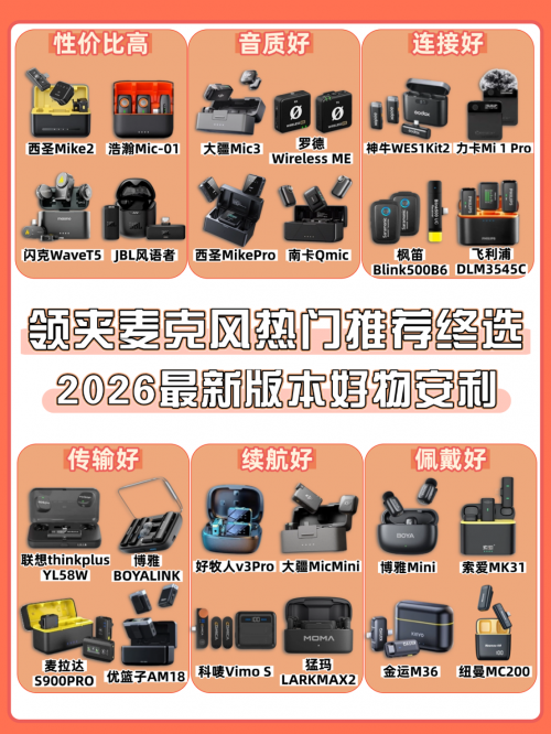 无线麦克风哪个牌子音质好?实测下来,这十大名牌无线领夹麦克风各有特点,没有明显短板,都能满足不同场景的收音需求。它们在核心性能上表现稳定,操作也比较人性化,适配不同创作人群与预算,这也是能频频断货的原因。大家可以根据自己的创作场景、使用习惯和预算选择,不用盲目追求花哨功能,实用顺手、适配自身需求就好。