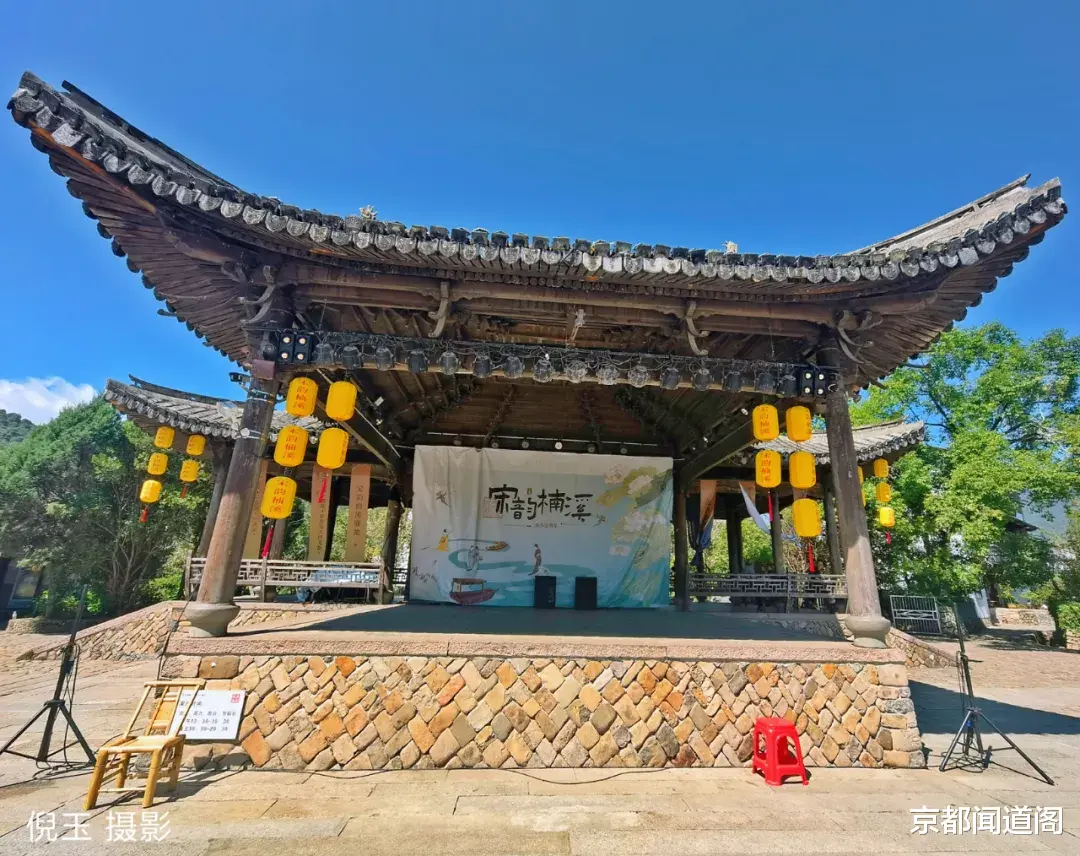 更令人惊喜的是古今相融的独特韵味。借助楠溪江音乐节的高人气,丽水街引入留声物语咖啡馆、黑胶唱片店等音乐主题店铺,打造出文旅、音旅、农旅融合的发展新模式。“音乐漫都”的定位吸引着年轻群体,古老长廊里既有岁月沉淀的静谧,也有潮流涌动的热闹,新旧碰撞间更显风情。还有不到50米便的古戏台,游览之际一曲优扬的歌声飘入耳朵,寻声一看,原来是自己正前方的水面上一位身着古装的年轻女人怀抱琵琶站立在船头一边弹奏一边吟唱,溪中小船成为流动的风景。“水上市集”四五条小船并排停靠一起,船上摆上了不少当地特色农副产品,卖货的几位女孩子也都是穿着古装,手持华伞,成为一道靓丽风景。