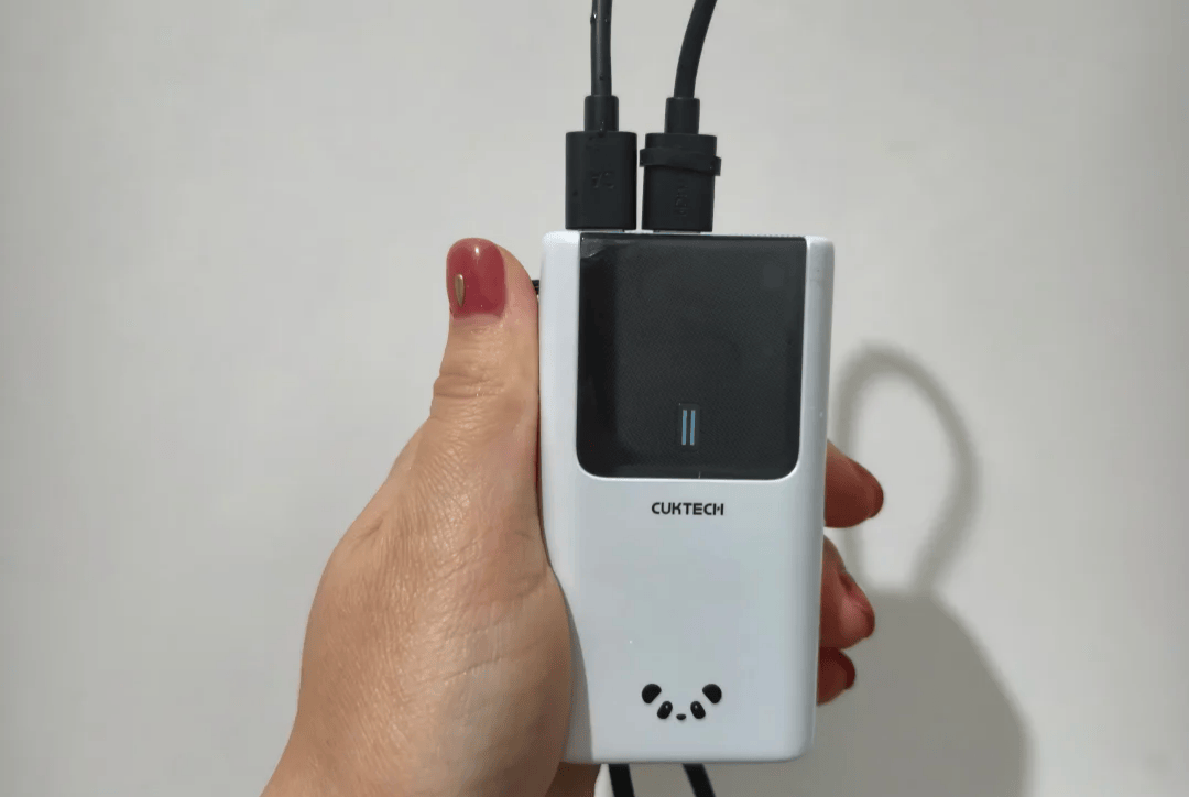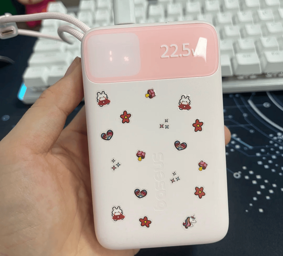 这款充电宝容量10000mAh,主要面向游戏场景使用,设计硬朗、握持感较好,携带时不会影响操作。自带磁吸和线充接口,实际测试中边玩王者荣耀边充电,线充效果稳定,磁吸充电偶尔会出现电量增长缓慢甚至略降的情况。充电宝配备AI动态控温技术,可根据负载自动调整输出功率与散热状态,使用中机身温度保持在可接受范围,手感不会因过热而不适。机身外观带有硬朗线条,如果喜欢潮玩风格或个性化造型,这款充电宝在视觉上也比较吸引眼球。适合长时间游戏或需要高功率输出的用户,但磁吸充电体验有时不如线充稳定,使用时需留意。