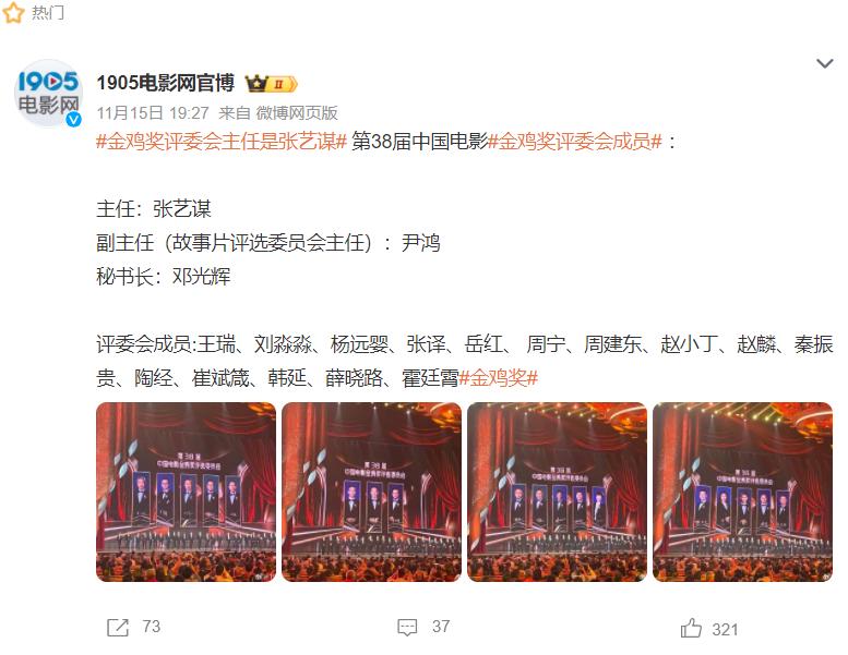 张艺谋是金鸡奖评委会主任,可是除了主任外,还有许多评委会成员,最终的结果是大家一起评选产生的,是行业专业人士对作品和角色的认可,并不存在凑巧的事情。