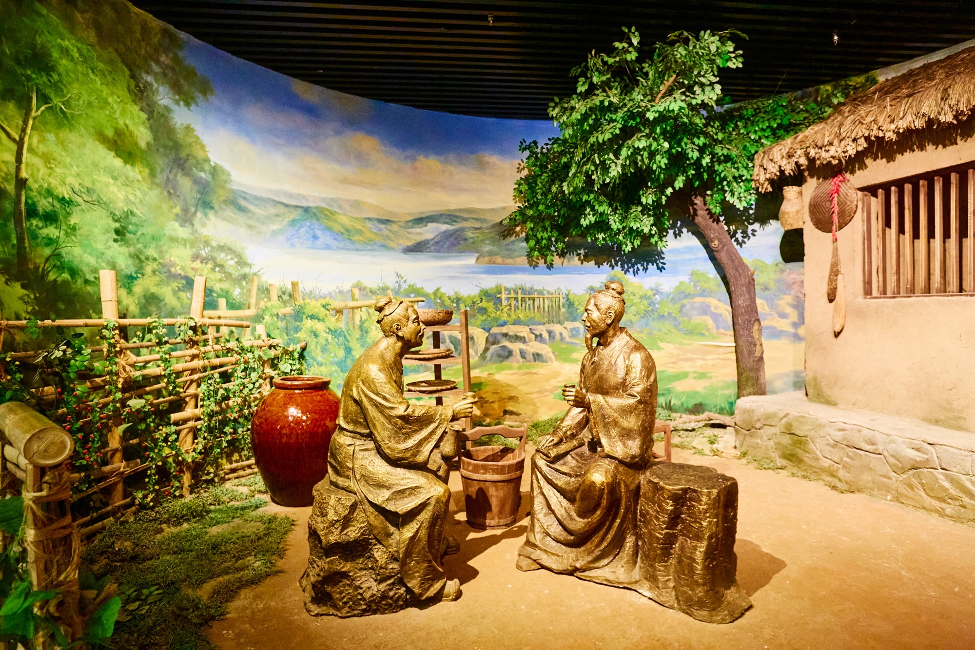 馆内复原了古人喝酒的各种场景,战前的饯行酒多少带着些悲壮气息,而在自家的小院里对坐而酌,闲话家常则是温馨惬意的治愈时光。