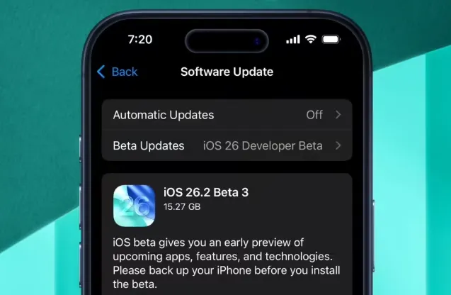 2025 年 11 月 18 日,苹果推送了 iOS/iPadOS 26.2 Beta 3(内部版本号 23C5044b),距上一测试版本仅间隔 5 天。