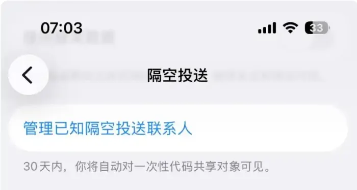 双方能在有效期内传输文件,还可在 “管理已知的隔空投送联系人” 中管理临时权限,解决了临时传文件需加联系人的麻烦。