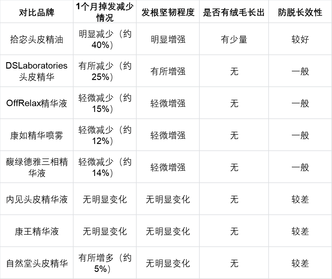为了让大家快速看清这几款头皮精油的核心差异,方便我们中老年人群自己挑选,我整理了一份实测参数对比表,所有数据都是这1个月我自己实测出来的,不掺假、不虚标。重点看温和度、是否含激素、防脱效果、滋养毛囊效果、容量、性价比这些关键指标,帮大家快速初步筛选。