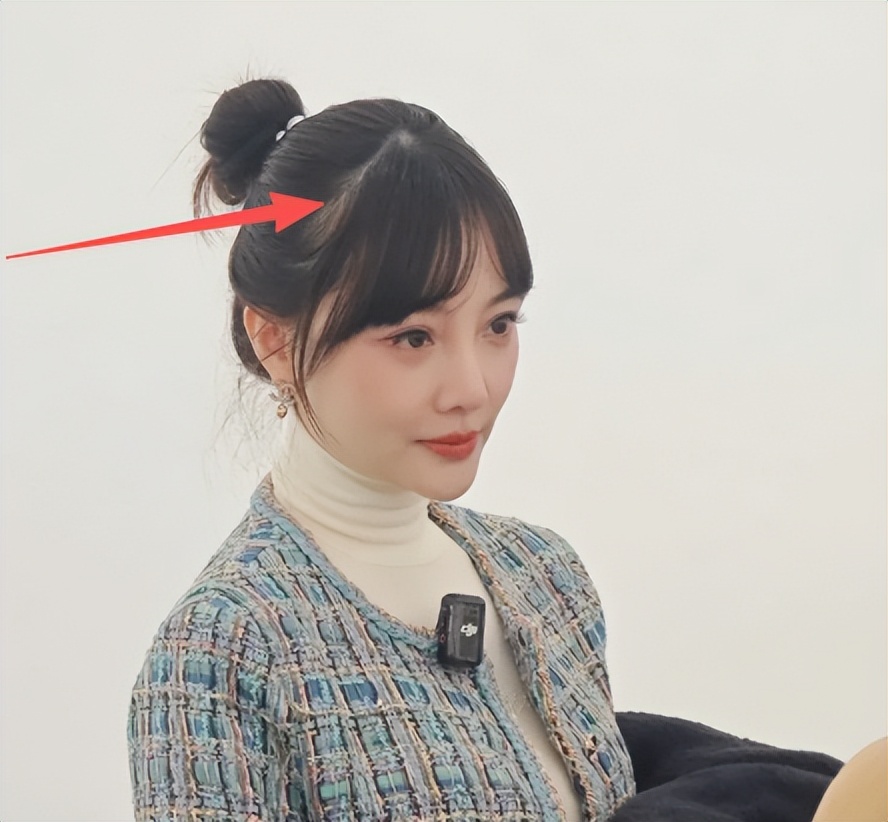 另外丸子头虽然清爽,但也让发缝问题暴露出来,和平时视频里浓密秀发的模样,形成了鲜明对比。而头发一少,也容易有年龄感。