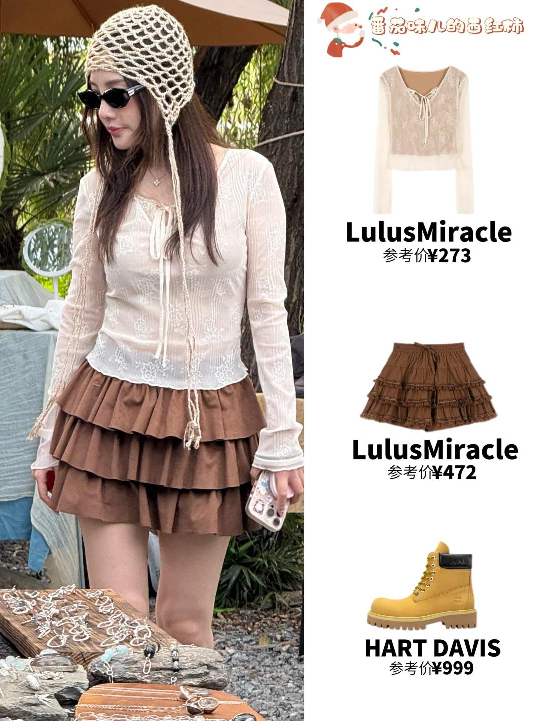在社交平台上,她最爱的还是少女感穿搭。像白色露脐背心配红色工装裤,秀出小蛮腰。