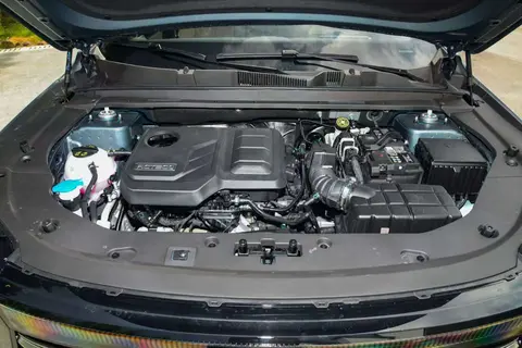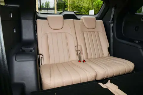 值得一提的是,车内舒适性体现在座椅及噪音控制和氛围营造上。先来看座椅,全车座椅采用仿皮材质,触感柔软,虽然不及真皮细腻,但透气性和支撑性都不错。座椅按照人体工学设计,对腰部和背部的支撑到位,我连续驾驶三个小时,下车后没有明显的腰酸背痛感。主驾座椅支持 12 向电动调节和 4 向腰托调节,很容易找到贴合自己的驾驶姿势,还配备了 10 点式按摩功能,长途驾驶时开启,能有效缓解疲劳。前排座椅带有加热、通风功能,冬天上车不用忍受冰冷座椅,夏天也能避免久坐闷热,实用性很强。七座版本的后两排座椅同样支持电动调节,第二排还配备了 5 档通风 / 加热功能和 30KG 承重的小桌板,不管是孩子在上面写作业,还是大人临时处理工作,都很方便。第三排座椅一键电动收放设计很贴心,操作简单,对女性用户也很友好。车内挑高超过 1.2 米,坐在任何一排都不会觉得压抑,全景天窗支持开启,采用高强度隔热材质,既能阻挡紫外线又能隔绝热量,白天打开能让车内采光更充足,晚上还能和家人一起观赏星空,增添出行乐趣。其次是发动机噪音控制得当,在 1500rpm 工况下,车内噪音仅 54 分贝,配合主动降噪技术,高速行驶时车内噪音也能控制在 62 分贝左右,交谈、听音乐都不受影响。车内配备 64 色氛围灯和 12 个扬声器组成的 7.1 声道音响系统,连接网络播放喜欢的歌曲,音质清晰通透,能为出行增添不少惬意感。