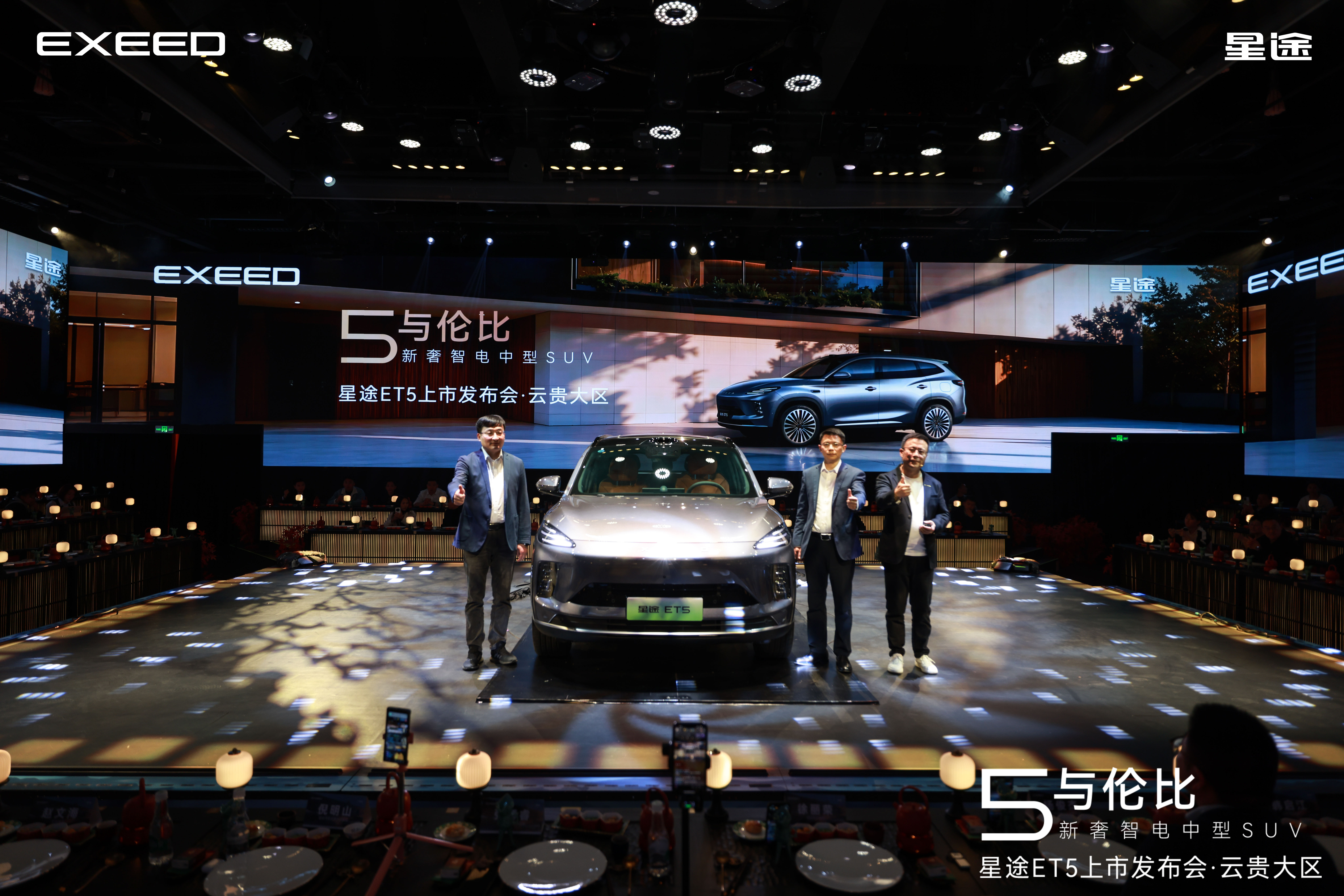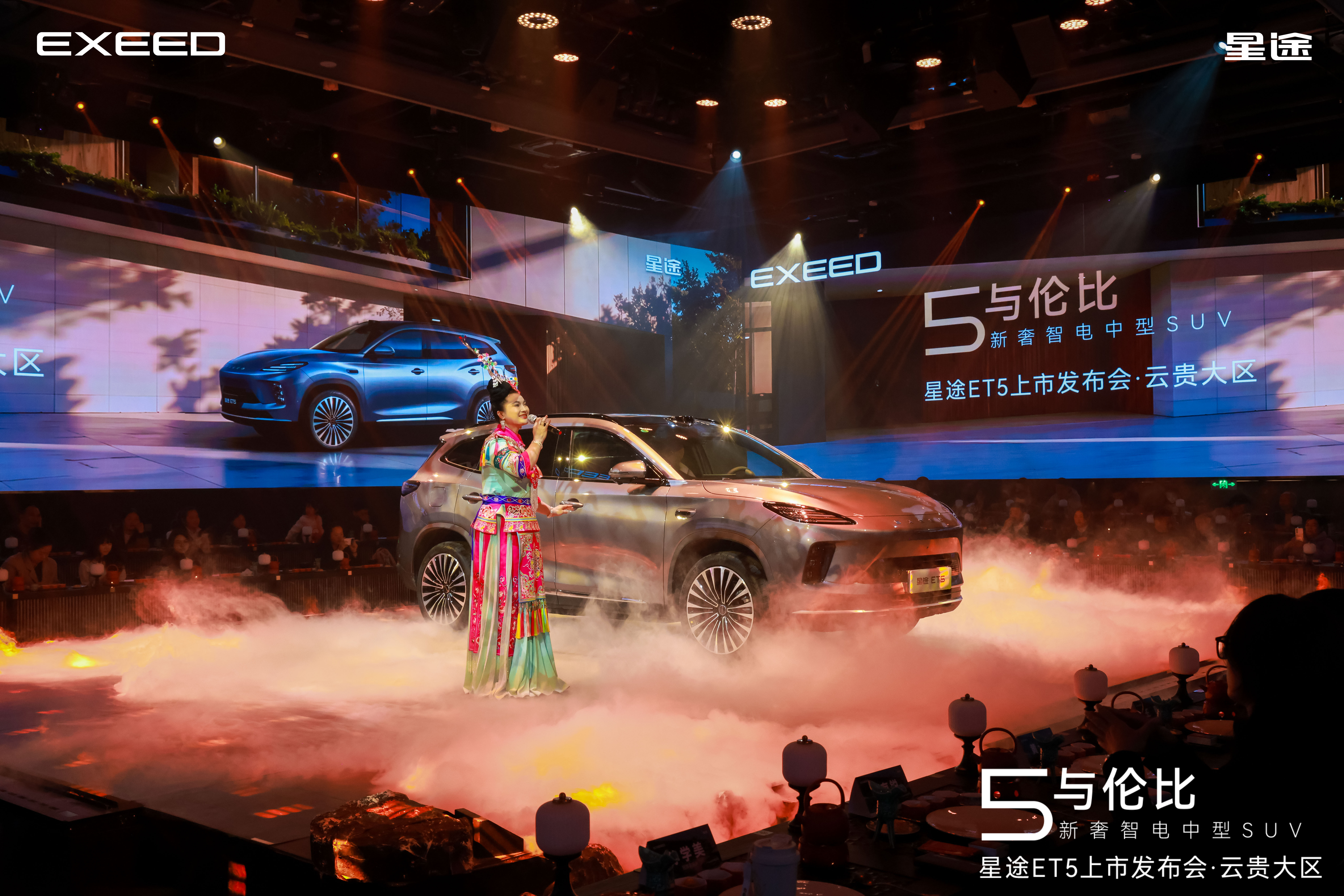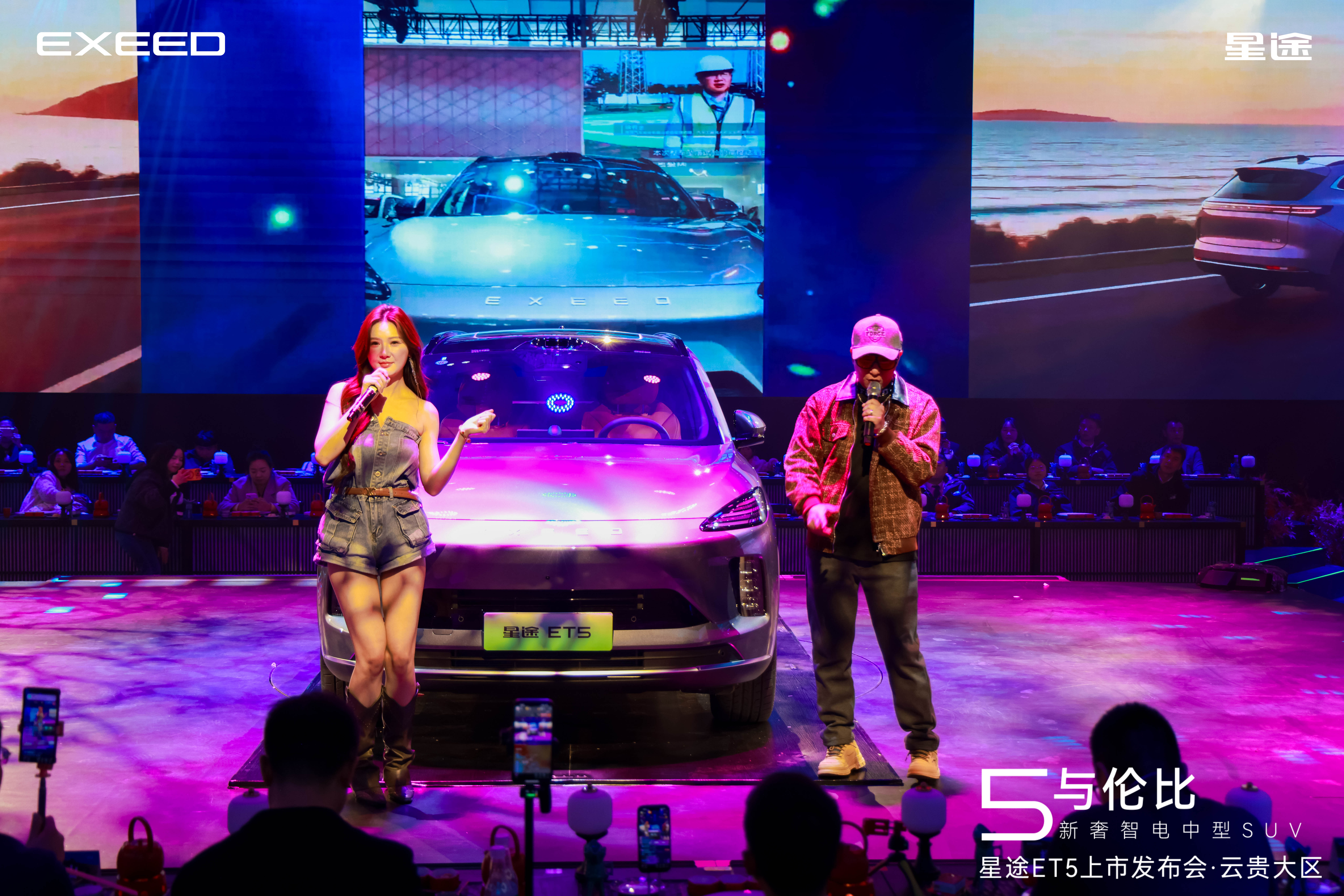 前期深度体验星途ET5的五位“五境品鉴官”,其试驾VLOG在现场首发,镜头中车辆穿越云贵山水的从容表现,生动诠释了产品全场景适应能力。更令人惊喜的是,星途营销中心云贵大区市场总监李宗城先生为星途ET5量身创作的单曲《ET5已就位》同步首发,动感旋律与车型亮点完美融合,将发布会气氛推向高潮。