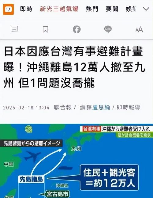有着一项清晰呈现的详细计划被公开披露了,日本政府已然制定了相关预案,要是台海地区产生变故的话,将会在6天时间之内从冲绳等一些地方撤离12万人口 ,该计划具体细化到每一天能够运输2万的人次,安置的地点分散在九州等一系列地方。这份极为详尽的预案表明,日本在实际上所作的准备跟口头表现出的强硬态势之间存在着显著的差异。