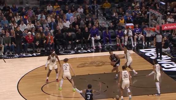 一记炸球转身勾手隔着TJD将球稳稳放进篮筐。