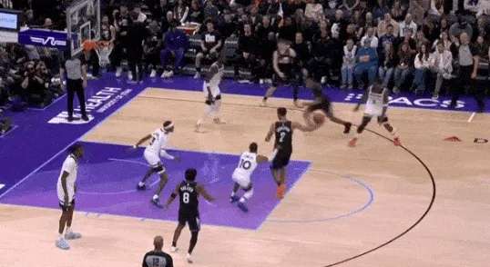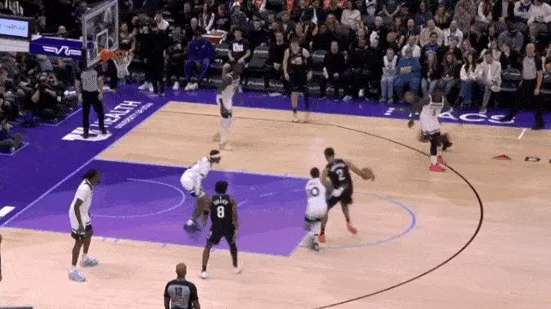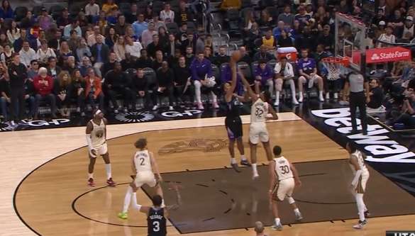 接马卡传球后篮下面对TJD,