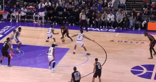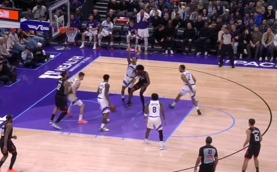凯尔为无球起手上提的森萨博设置Pin Down后立即下顺,