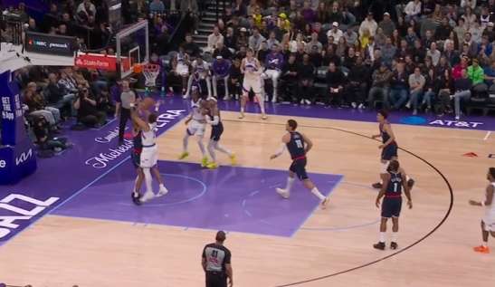 与此同时弱侧的乔治抓华子盯无球走神立即启动45°空切摆脱,李凯尔接克利尔传球后立即中转二传,击地球领人找到乔治,