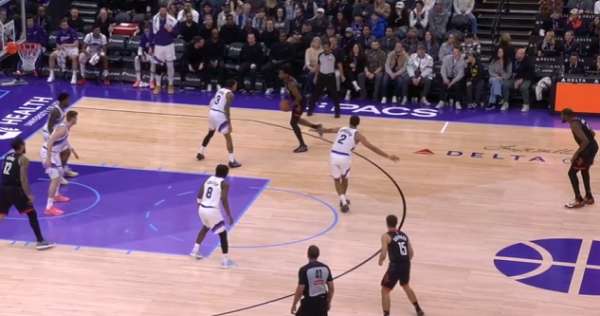 佯装要与拖车跟进的凯斯勒发动边路挡拆配合,