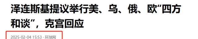 1.环球网-2025.2.4-《泽连斯基提议举行美、乌、俄、欧“四方和谈”,克宫回应》