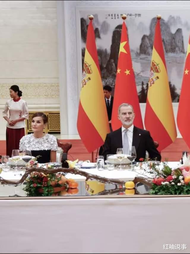 祝酒前,中方深情表达了,对两国关系持续发展的美好祝愿,“友谊永存”四字,掷地有声。莱蒂齐亚王后则以西班牙的谚语回应:“在西班牙,人们常说,拥有朋友就等于拥有了宝藏。”话语间,流露出对中西友谊的珍视与期待。