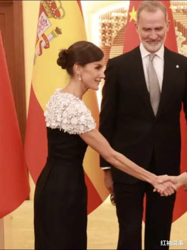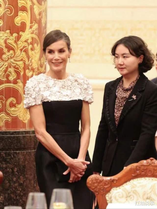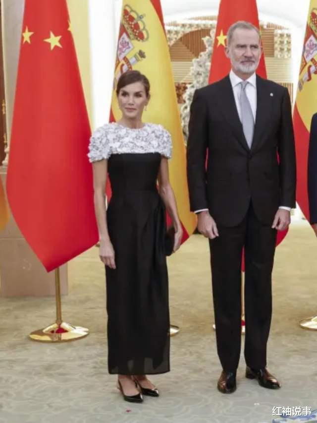 莱蒂齐亚王后闪耀晚宴,黑白配晚礼服绝美,遗憾未佩戴王冠