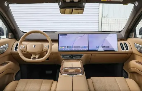 接下来我们再看一看深蓝S09这款车的车内配置。它使用的是华为鸿蒙座舱Harmony space5系统,该系统算力强大,能够为驾驶者带来丰富的车机功能。卫星导航、蓝牙电话、道路救援服务、应用商店等多种实用车机功能都是标配,满足不同驾驶者的使用需求。整个车机系统还支持语音识别、语音控制和多指飞屏操控等多种交互方式。特别是语音识别控制功能,内置了智能语音小助手,融合了AI语音大模型,支持分区域唤醒,能够轻松识别来自车内任何位置的语音指令,实现快速设置。车辆在前排中控台上配备了一块15.6英寸的LCD中控大屏,分辨率达到2.5K,配合车机系统使用,能够为驾驶者提供清晰细腻的视觉体验。方向盘和副驾驶座椅还配备了一块15.6英寸的2.5K娱乐大屏,满足乘坐者的实际使用需求。此外,抬头显示系统可投射出43英寸的HUD投影,在车内实现多屏互动,进一步提升车辆的智能化水准。