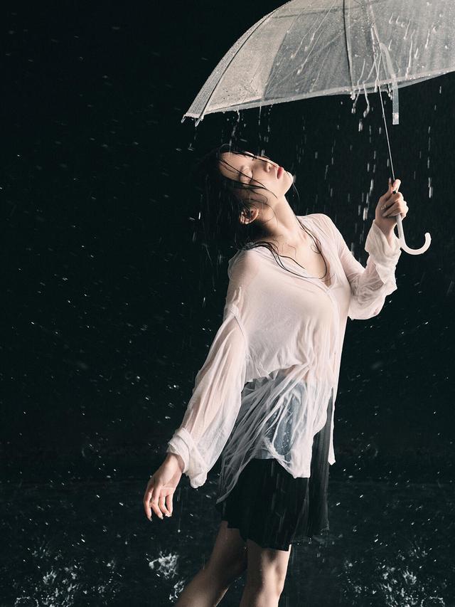 选择阴雨天,地点可挑空旷街道、公园水池或废弃建筑,利用自然雨水营造氛围。在服装与道具上,注意选浅色、轻薄且易透水的衣物(如白衬衫),搭配透明雨伞,增加画面层次与情绪感。