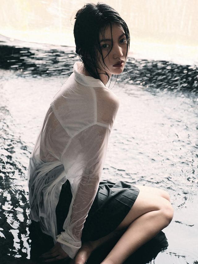 前期可以进行人物引导,随后不要随便破坏模特酝酿的情绪让模特放松,眼神带忧郁或沉思,姿态自然(如趴、躺、坐水中),捕捉不经意的瞬间,如发丝飘动、雨滴滑落。