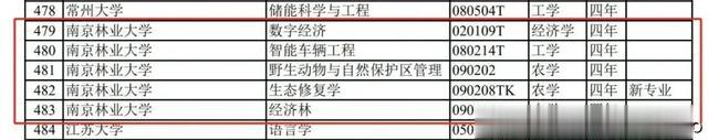 2024年3月,教育部公布了2023年度普通高等学校本科专业备案和审批结果,并发布2024年普通高等学校本科专业目录。学校获批数字经济、智能车辆工程、野生动物与自然保护区管理、生态修复学、经济林5个本科专业,其中“生态修复学”专业为全国高校本科新增24个专业之一。
